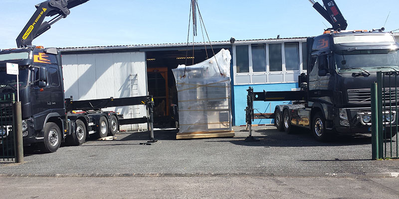 Le chargement a été supervisé par nos soins à l'aide d'une grue sur une remorque extra-surbaissée.